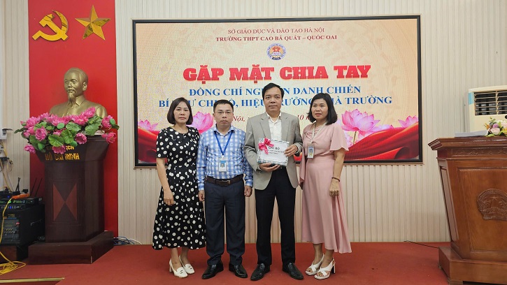 Trước khi thầy bước sang chặng đường mới tập thể sư phạm nhà trường xin gửi đến thầy lời tri ân chân thành và sâu sắc nhất. Cảm ơn thầy, cảm ơn người em, người anh, người lãnh đạo mẫu mực đã luôn đồng hành, dìu dắt và truyền cảm hứng cho bao thế hệ. Chúc thầy luôn mạnh khỏe, hạnh phúc, tiếp tục lan tỏa tình yêu nghề, lòng nhân ái và bản lĩnh của người thầy mẫu mực trên hành trình mới và chúng tôi luôn tin rằng dù ở đâu thầy vẫn sẽ tiếp tục tỏa sáng, gặt hái được nhiều thành công và mang lại nhiều giá trị tốt đẹp cho đồng nghiệp, học sinh. Chúng tôi mong rằng thầy sẽ luôn nhớ về ngôi trường Cao Bá Quát – Quốc Oai nơi đã ghi dấu một chặng đường thanh xuân đẹp đẽ, trọn nghĩa, vẹn tình trong công tác dạy học và quản lý của mình../.